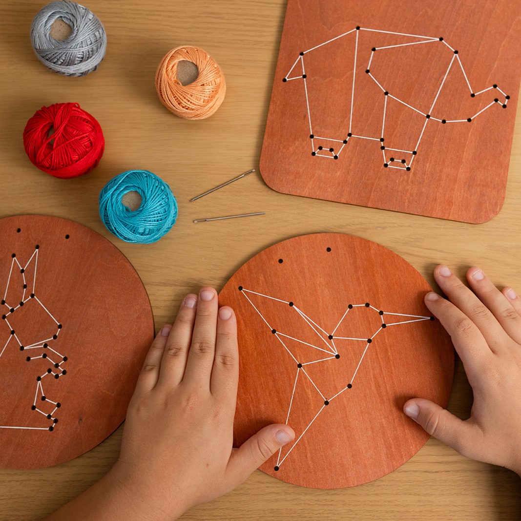 ุฅุจุฏุงุนู ููุชุทุฑูุฒ ุจุงูุฎููุท ุนูู ุฃููุงุญ ุฎุดุจูุฉ.